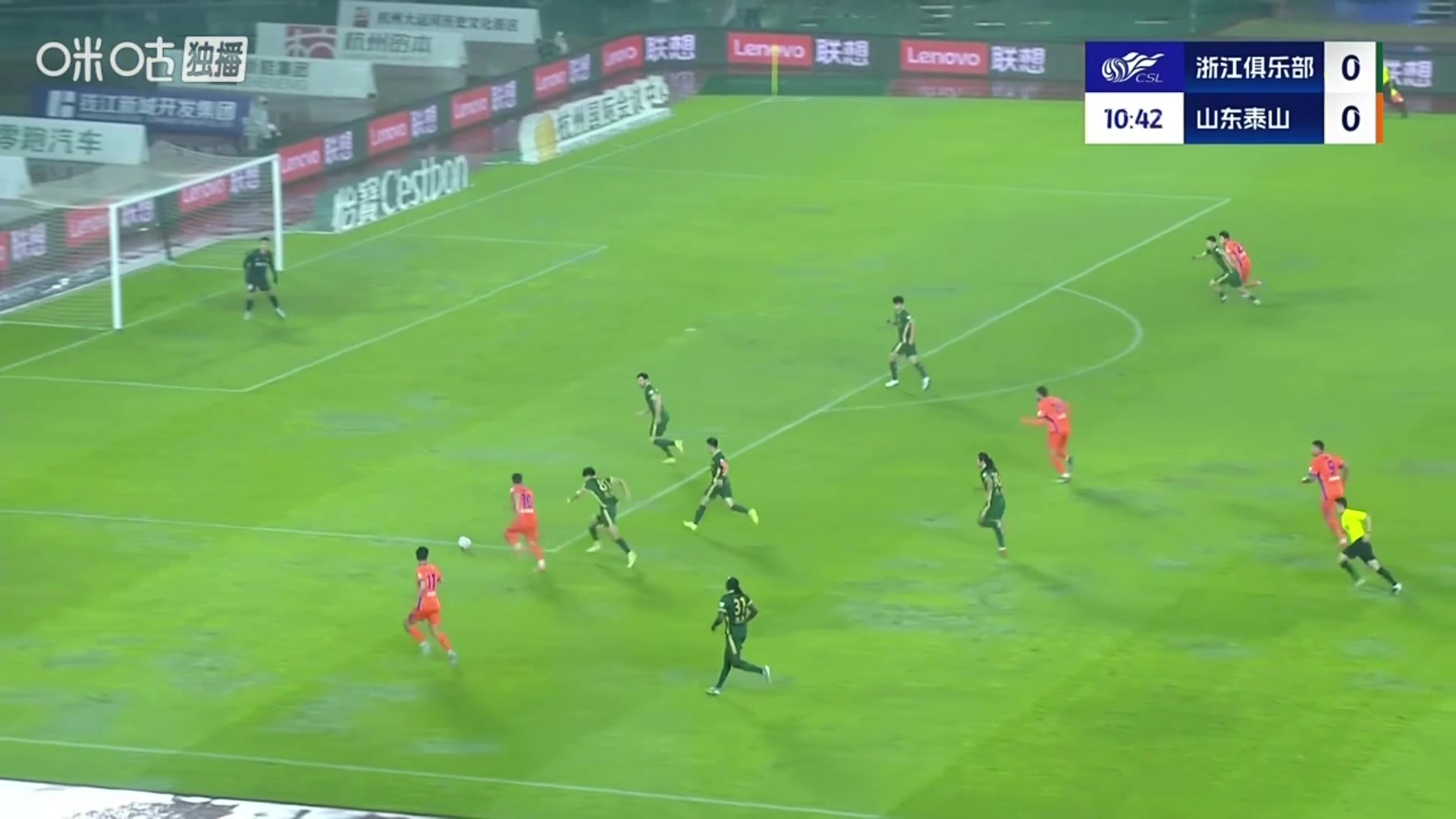 浙江门将神级发挥泽卡禁区内面对半空门推射被赵博神扑